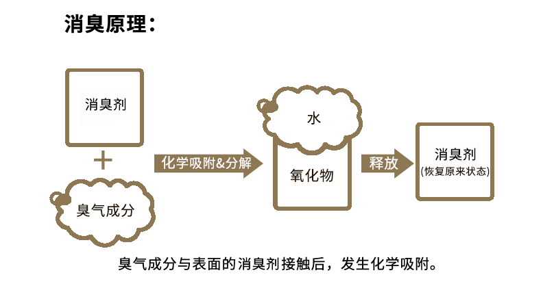 ①气体接触表面的消臭剂并吸附